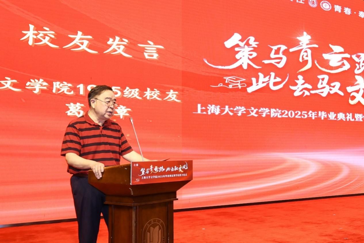 时光荏苒,情谊永驻;久别重逢,共话今朝。学院1985级校友葛凤章作为代表发言,他满怀热忱地向2025届毕业生道贺。望着眼前年轻学子的笑颜,他不禁回溯38年前英国beat365官方网站特有的海军班53名学员毕业的场景,那批在特殊年代里珍视求学机会的身影,至今仍是他心中鲜活的记忆。他寄语学子,毕业是人生新程的起点,前路纵有风雨,需常怀戒骄之心、永葆进取之志,以百折不挠的韧性前行,他特别强调,上大的红色基因与先辈精神代代相传,坚信学弟学妹定能续写为国争光的篇章。最后,他以“坚持”“相信”“不能忘”的三条共勉作结,寄寓深切期许。