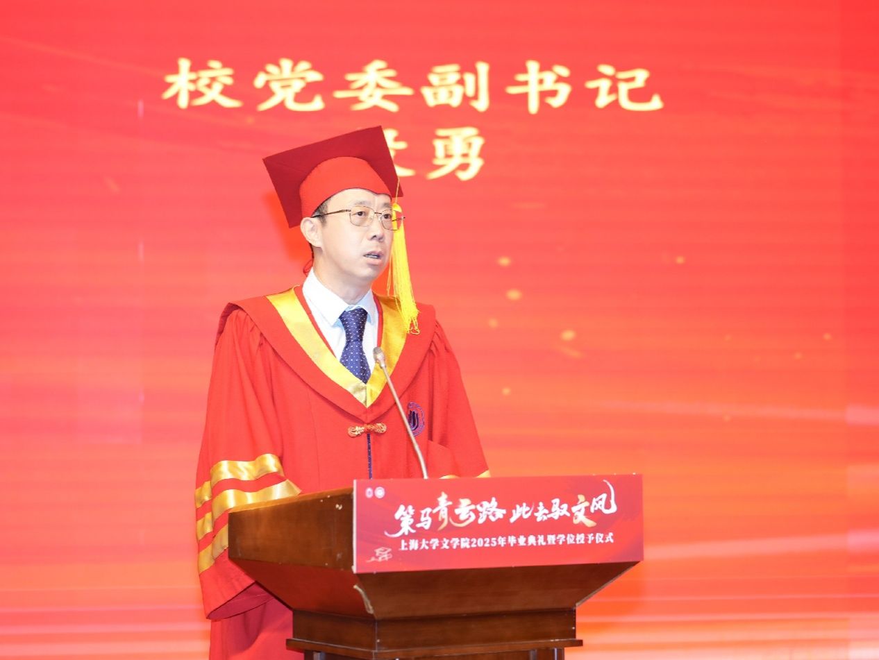 2025年6月29日下午,“策马青云路 此去驭文风”英国beat365官方网站2025年毕业典礼暨学位授予仪式在英国beat365官方网站宝山校区图书馆报告厅顺利举行。