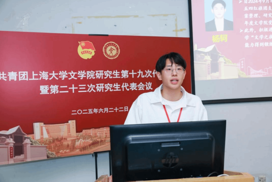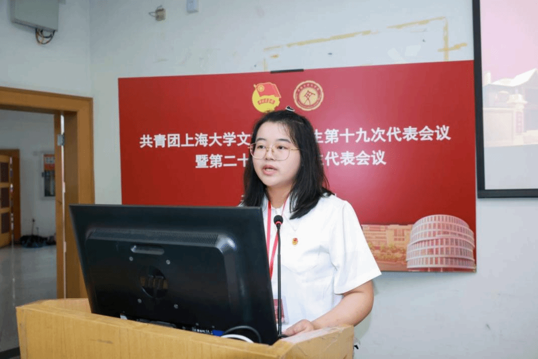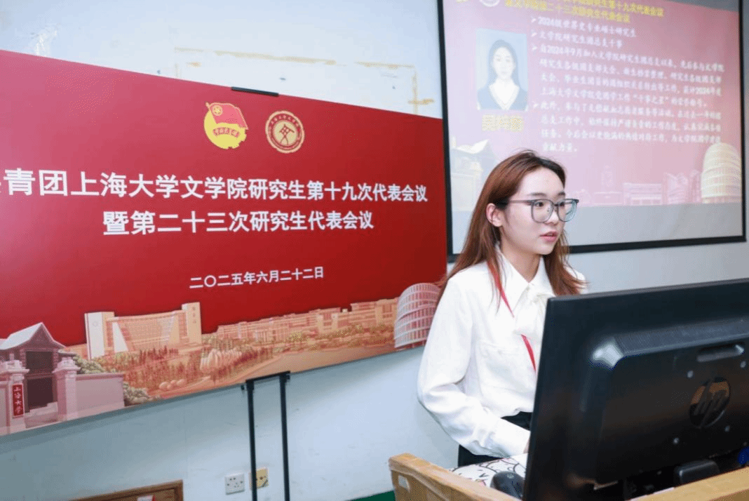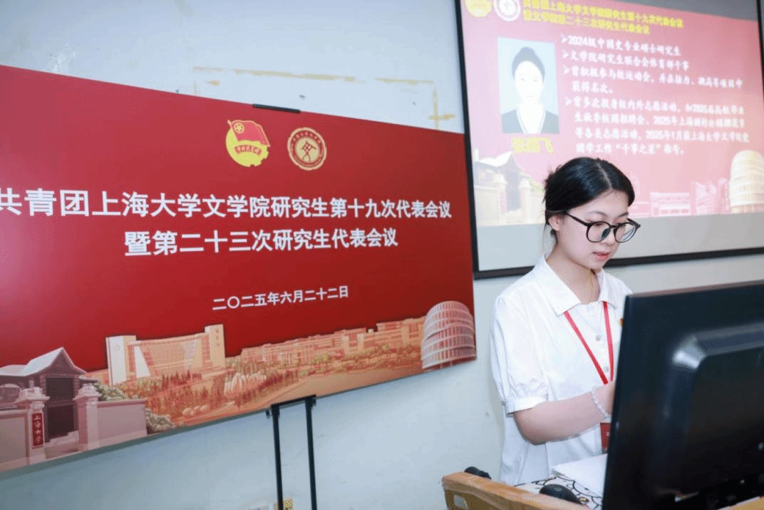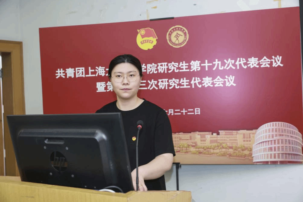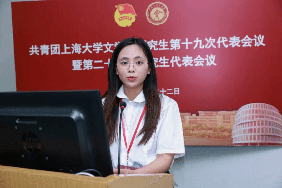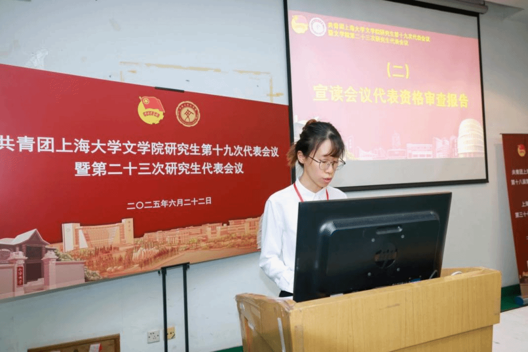 英国beat365官方网站第二十二届研究生联合会主席团成员徐慧琳宣读《共青团英国beat365官方网站研究生第十九次代表会议暨英国beat365官方网站第二十三次研究生代表会议代表资格审查报告》。
