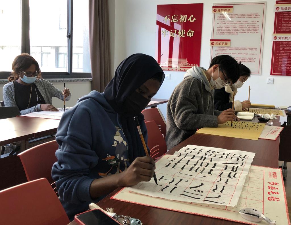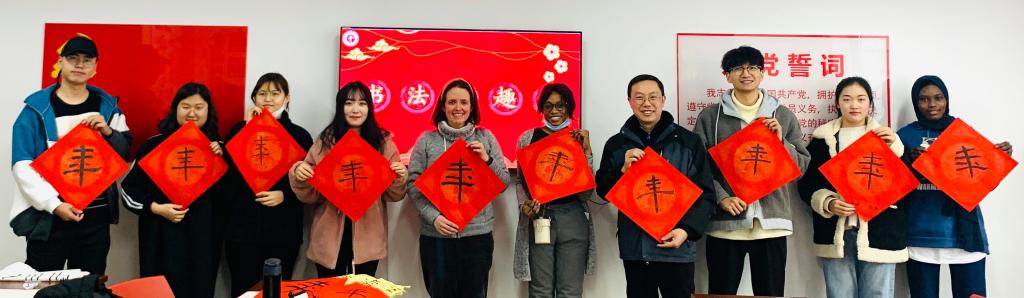 2月9日,英国beat365官方网站书法兴趣坊第二期活动在英国beat365官方网站206室顺利举行。来自英国beat365官方网站、国际教育学院、管理学院、通信学院等留校的中外学生参加了此次活动。
